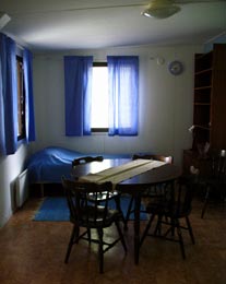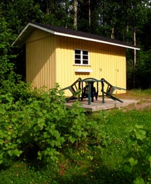 Aitta/varastorakennus, jonka edustalla patio. Henkilömäärä 5+2. Mökin varustus: 2mh + tupakeittiö, jossa vuode,